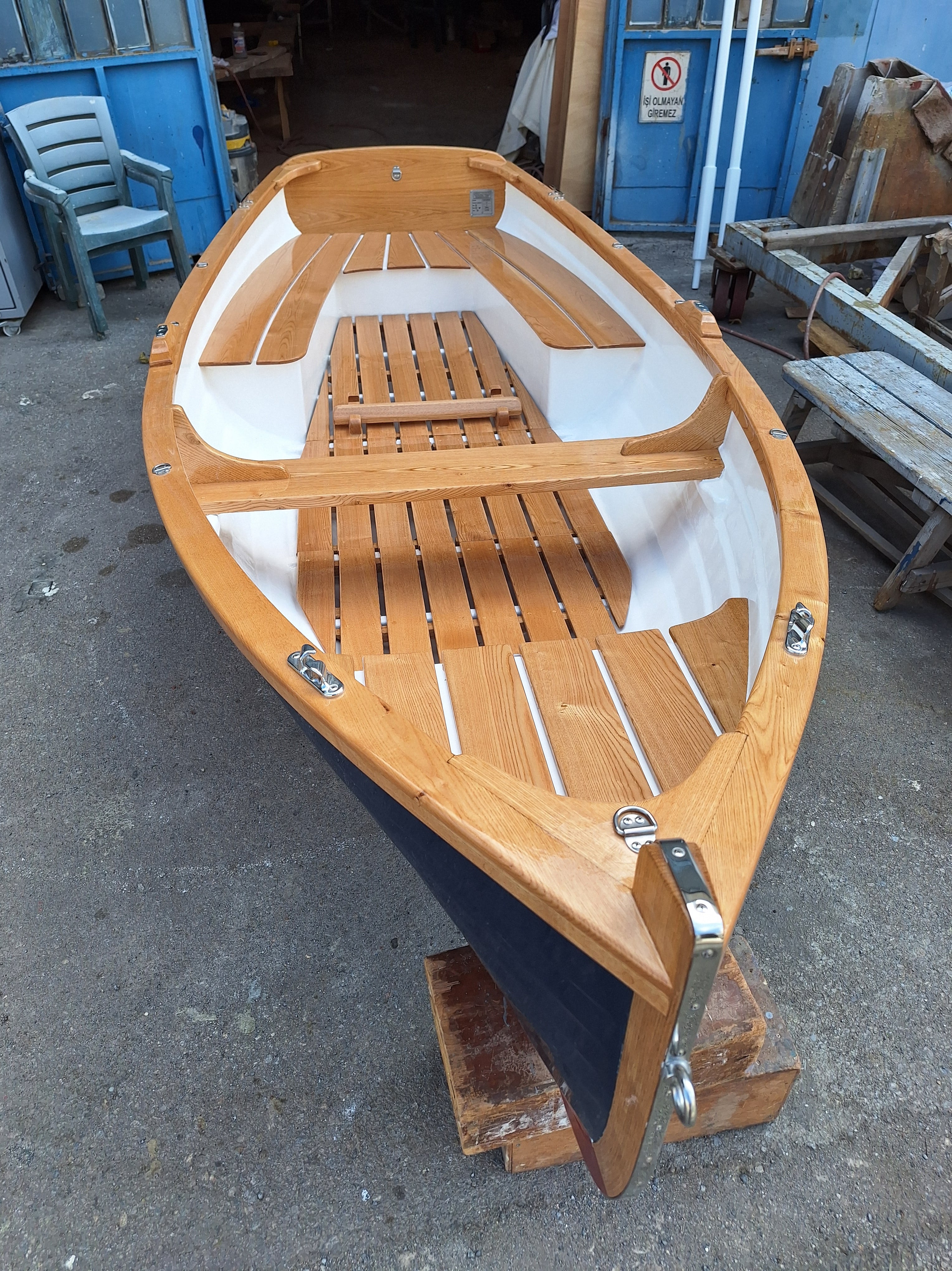 Teknenin gövdesi Polyester, iç kismi ahsaptir. Teknede International marka vernik ve zehirli boyalari kullanılmaktadır.